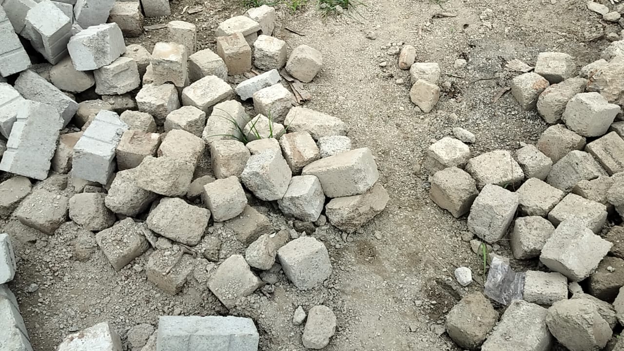 घटिया किस्म की ईंटों और काली डस्ट का किया जा रहा उपयोग