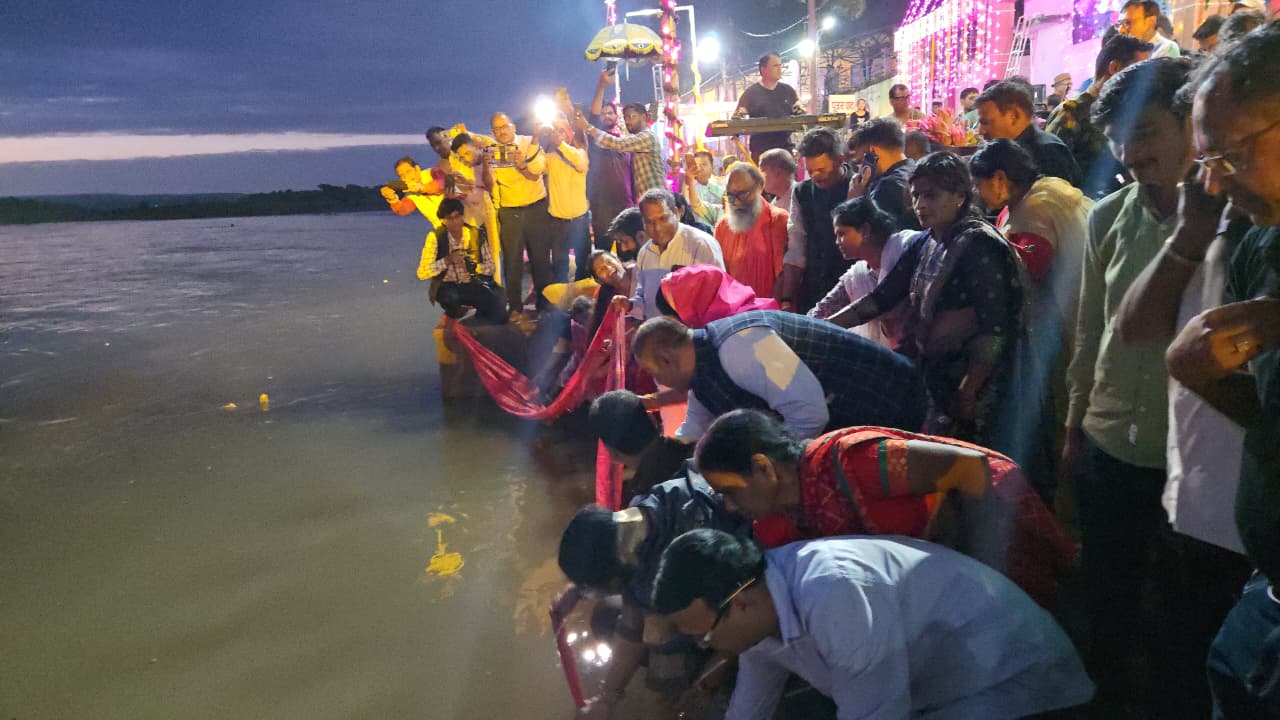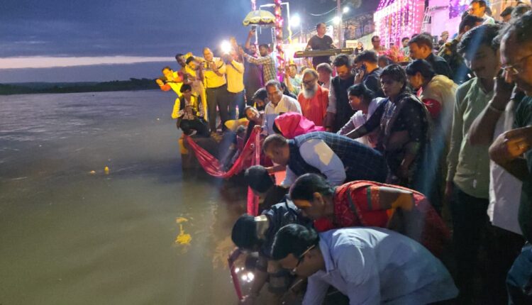 रेवांचल टाईम्स – मण्डला, देवउठनी एकादशी के पावन अवसर पर माहिष्मती घाट पर माहिष्मती महोत्सव का भव्य आयोजन किया गया यहां मां नर्मदा की चुनरी शोभायात्रा हनुमान मंदिर कलेक्ट्रेट से निकाली गई जो माहिष्मती घाट पहुंची। यहां पर देवउठनी ग्यारस का पूजन रंगोली दीपदान महाआरती एवं भजनों की शानदान प्रस्तुति हुई। देवउठनी ग्यारस त्यौहार के अवसर पर पंचचौंकी महाआरती के एक वर्ष पूर्ण हो गए। जिसके प्रथम वर्षगांठ पर महिष्मति घाट मंडला में भव्य आयोजन किया गया। पवित्र नर्मदा तट माहिष्मती घाट शनिवार की शाम भक्ति और आस्था से सराबोर नजर आया। इस अवसर पर सैकड़ो श्रद्धालुओं की उपस्थिति में भव्य चुनरी शोभायात्रा, तुलसी विवाह, दीपोत्सव और महाआरती का आयोजन किया गया जिसमें जिले के प्रशासनिक अधिकारी, जनप्रतिनिधि और बड़ी संख्या में श्रृद्धालु शामिल हुए। कार्यक्रम की शुरुआत कलेक्ट्रेट हनुमान मंदिर से चुनरी शोभायात्रा के साथ हुई। सैकड़ों महिलाओं ने मां नर्मदा के जयघोष के साथ यात्रा में भाग लिया। शोभायात्रा जब माहिष्मती घाट पहुंची तो मध्यप्रदेश की कैबिनेट मंत्री श्रीमती संपतिया उईके ने स्वयं यात्रा का स्वागत किया। मंत्री ने कहा यह आयोजन नर्मदा मैया के प्रति हमारी श्रृद्धा और भक्ति का प्रतीक है। आज मध्यप्रदेश स्थापना दिवस भी है जिस तरह प्रदेश निरंतर प्रगति कर रहा है उसी तरह मंडला भी विकास की दिशा में अग्रसर है। वही महिष्मति घाट पर पहुंचने के बाद तुलसी विवाह का आयोजन विधि-विधान से संपन्न हुआ। मंत्री संपतिया उईके और कलेक्टर सोमेश मिश्रा ने पूजन-अर्चन में भाग लिया। कथा वाचक पंडित नीलू महाराज ने वैदिक मंत्रोच्चार के बीच तुलसी विवाह सम्पन्न कराया। इस दौरान मां नर्मदा को चुनरी अर्पित की गई और जिले की समृद्धि व विकास कामना की गई। संध्या होते ही माहिष्मती घाट 21 हजार दीपों की रोशनी से जगमगा उठा। मंत्री, कलेक्टर सहित प्रशासनिक अधिकारियों और पंचचौकी महाआरती समिति सदस्य एवं ट्रस्टी ने दीप प्रज्ज्वलन कर मां नर्मदा की भव्य महाआरती की। हर-हर नर्मदे के जयघोष से पूरा घाट भक्तिमय वातावरण में डूब गया। कलेक्टर सोमेश मिश्रा ने कहा काफी प्रयासों के बाद माहिष्मती घाट को एक विकसित धार्मिक एवं सांस्कृतिक केंद्र के रूप में स्थापित किया गया है। पंच चौकी महाआरती अब मंडला की पहचान बन चुकी है जो जिले की सांस्कृतिक विरासत और आस्था का प्रतीक है। श्रृद्धालुओं को प्रसाद ग्रहण किया गया। बता दें जबलपुर ग्वारी घाट, उज्जैन महाकाल और बनारस व मां गंगा तट की तर्ज पर आयोजित इस महाआरती को देखने के लिए विगत वर्ष में दूर-दूर से धर्मप्रेमी पहुंचे हैं। मां नर्मदा महाआरती समिति का गठन किया गया है। समिति के सफल संचालन के लिए आज