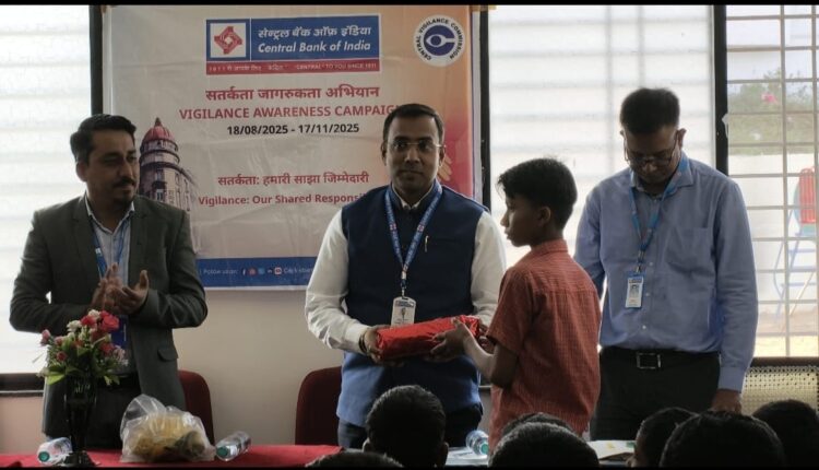 रेवांचल टाइम्स छिंदवाड़ासेंट्रल बैंक ऑफ इंडिया द्वारा समाज में ईमानदारी, पारदर्शिता और जिम्मेदारी की भावना को सशक्त बनाने के उद्देश्य से चलाए जा रहे सतर्कता जागरूकता अभियान के तहत छिंदवाड़ा में एक प्रेरणादायक कार्यक्रम का आयोजन किया गया। क्षेत्रीय कार्यालय छिंदवाड़ा ने शासकीय जनजातीय बालक आश्रम विद्यालय के विद्यार्थियों के बीच शैक्षणिक सामग्री वितरण और ड्राइंग प्रतियोगिता का आयोजन कर भविष्य के नागरिकों को नैतिक मूल्यों से जोड़ा।