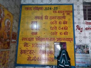वही बस स्टैंड में स्थिति सुलभ शौचालय के अंदर भी गंदगी बज बजा रही सफ़ाई कहि भी नही दिखाई पड़ रही है बाहर से आने जाने वाले यात्रियों का मुंह सुकोड कर पेशाब घर जा पाते है जगह जगह गन्दगी देखने को मिल रही हैं साथ ही शौचालय पीछे की तस्वीर में स्पष्ट आप देख पा रहे होंगे की एक तरफ कचरे का ढेर लगा है ,और ना ही अच्छे से साफ सफाई, ना ही टूट- फूट पर कोई ध्यान, सफाई की समय सारणी यह बतला रहा है कि दिन में तीन बार साफ सफाई किया जाता है फिर भी शौचालय में इतनी गंदगी बनी रहती है, बदबू आती रहती है एक और जहां सरकार हमारी स्वच्छ भारत मिशन अभियान चला रही है दूसरी ओर कर्मचारी अपनी मनमानी चला रहे हैं।
