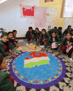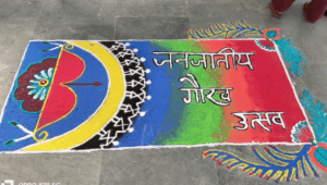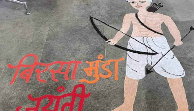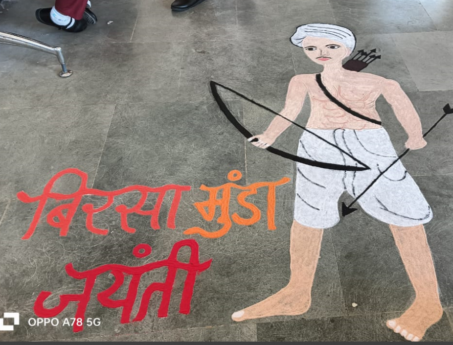 कन्या परिसर बजाग की छात्राओं ने रंगोली के माध्यम से जनजातीय नायक का किया सजीव चित्रण,