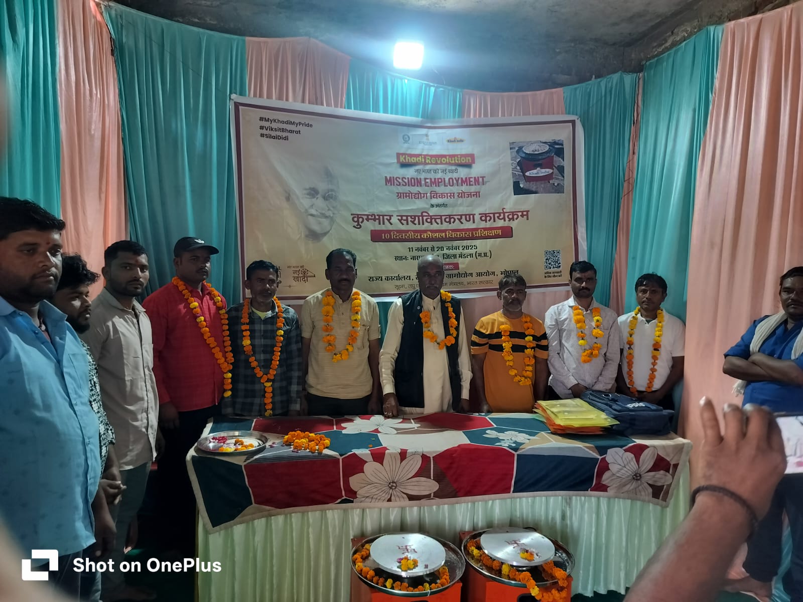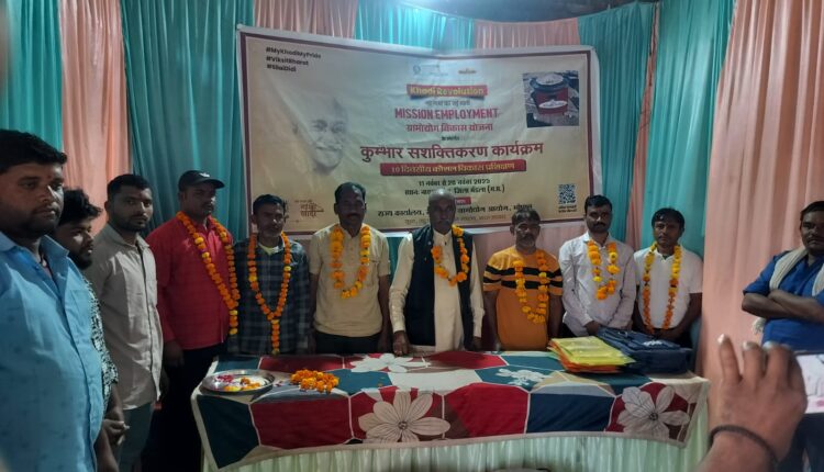 रेवांचल टाइम्स नारायणगंज मंडला ग्राम उद्योग विकास योजना के अंतर्गत कुंभकार सशक्तिकरण कार्यक्रम का शुभारंभ नारायणगंज नगर में किया गया। यह प्रशिक्षण शिविर 11 नवंबर से 20 नवंबर तक आयोजित होगा, जिसमें स्थानीय कुम्हार समाज को आधुनिक माटी कला तकनीकों का प्रशिक्षण दिया जा रहा है।कार्यक्रम का शुभारंभ ग्राम पंचायत के सरपंच द्वारा मां सरस्वती पूजन के साथ किया गया। इस अवसर पर उपस्थित समाजजनों ने पारंपरिक माटी कला के महत्व और उसके आधुनिकीकरण की दिशा में उठाए गए इस कदम की सराहना की।इस प्रशिक्षण में राज्यस्तरीय टेराकोटा आर्टिस्ट हेमंत प्रजापति (नर्मदापुरम) द्वारा प्रशिक्षण दिया जा रहा है। उन्होंने माटी से बनने वाले विभिन्न सजावटी व उपयोगी वस्तुओं के निर्माण की आधुनिक तकनीकों का प्रदर्शन किया। उनके मार्गदर्शन में प्रतिभागी पारंपरिक कला को आधुनिक डिजाइन और बाजार की मांग के अनुरूप ढालना सीख रहे हैं।आयोजकों ने बताया कि इस प्रशिक्षण का मुख्य उद्देश्य कुम्हार समाज को आर्थिक रूप से आत्मनिर्भर बनाना और परंपरा को आधुनिक जीवनशैली से जोड़ना है।