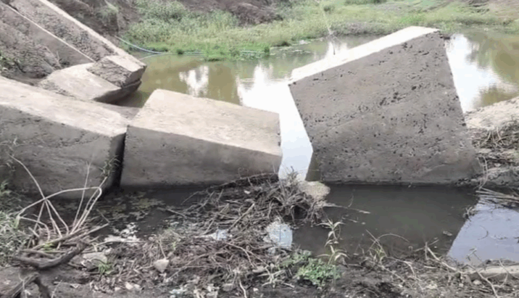 लाखों रुपए की लागत से बना स्टांप डेम हुआ क्षतिग्रस्त, ग्रामीणों में आक्रोश पानी को तरसता स्टाप डेम