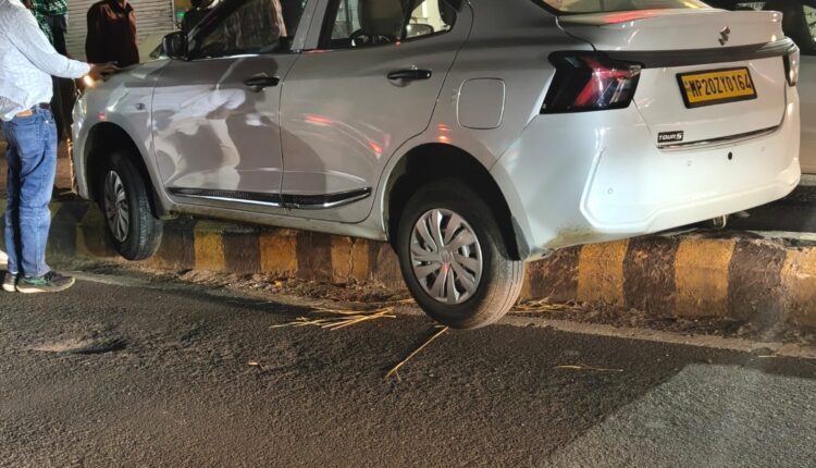 डिवाइडर से टकराई कार, बाल-बाल बची बड़ी दुर्घटना; तेज लाइट बनी वजह!