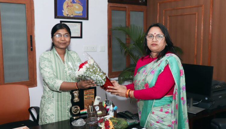 दैनिक रेवाँचल टाईम्स – डिंडौरी, जिले में 14 नवंबर, 2025 साकेत नगर डिंडौरी निवासी सुश्री रश्मि कुशरे ने एमपीपीएससी 2023 परीक्षा में उत्कृष्ट प्रदर्शन करते हुए 20वीं रैंक प्राप्त की है। इस उल्लेखनीय उपलब्धि के साथ उनका चयन डिप्टी कलेक्टर पद पर हुआ है। सफलता के बाद सुश्री रश्मि ने कलेक्टर कार्यालय पहुंचकर कलेक्टर श्रीमती अंजू पवन भदौरिया से सौजन्य भेंट की। कलेक्टर श्रीमती भदौरिया ने उन्हें हार्दिक बधाई और शुभकामनाएं देते हुए जिले के युवाओं को भी निरंतर मेहनत से सफलता अर्जित करने का संदेश दिया।