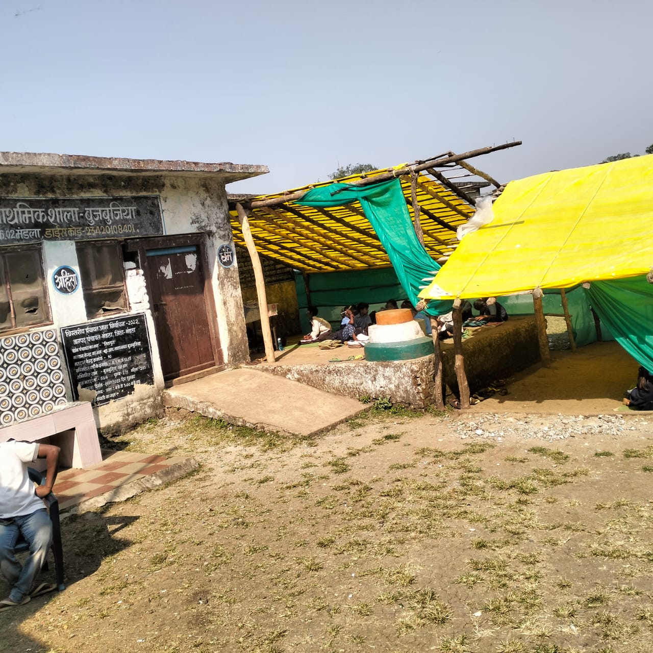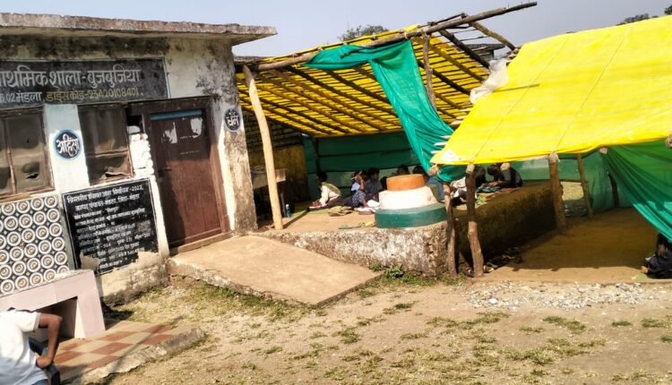 पन्नी से बनाई झोपड़ी में बुजबुजिया प्राइमरी स्कूल में पढ़ाई करने की जद्दोजहद