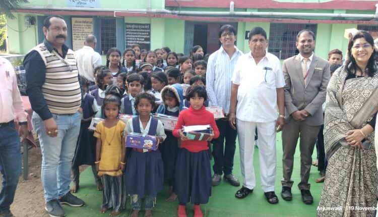 उपहार योजना अंतर्गत अर्जुनवाड़ी के 92 विद्यार्थियों को तनिष्क ज्वेलर्स द्वारा जूते–मोज़े वितरण