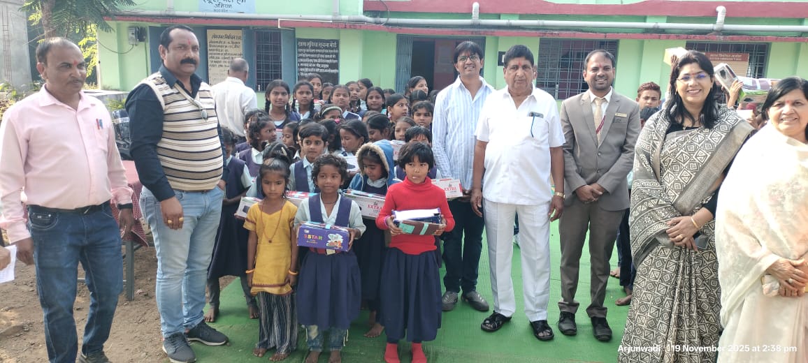 मोहखेड़ विकासखंड के शासकीय एकीकृत माध्यमिक विद्यालय अर्जुनवाड़ी में स्कूल शिक्षा विभाग की उपहार योजना अंतर्गत प्रतिष्ठित तनिष्क ग्रुप द्वारा एक प्रेरणादायी एवं सामाजिक उत्तरदायित्व से परिपूर्ण कार्यक्रम आयोजित किया गया। इस अवसर पर तनिष्क ज्वेलर्स के ऑनर श्री संकेत पाटोदी श्रीमती करुणा पाटोदी, श्रीमती शोभा पाटोदी श्री महावीर काशलीवाल एवं श्रीमती मीना काशलीवाल द्वारा कक्षा पहली से आठवीं तक के कुल 92 छात्र-छात्राओं को ब्रांडेड कंपनी के जूते मोज़े वितरित किए गए।