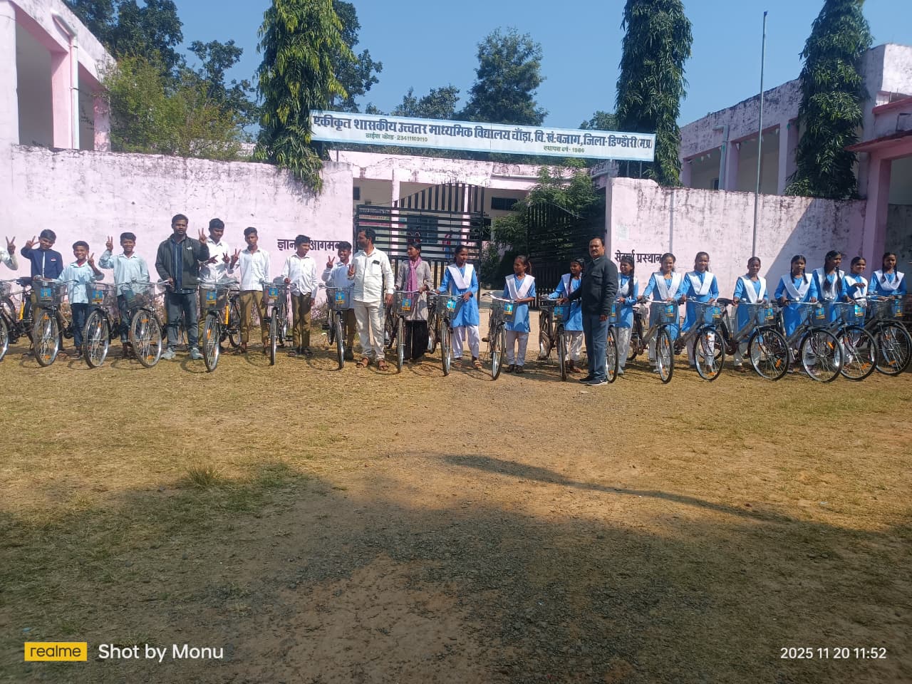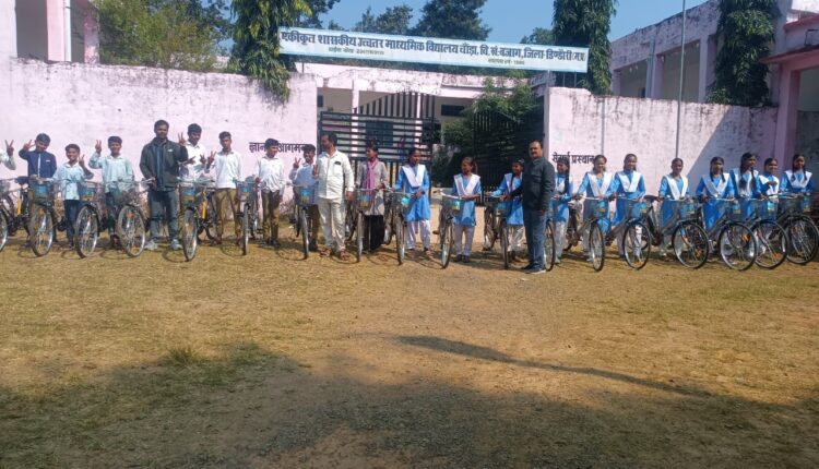 वनग्राम चांडॉ में हाई स्कूल के छात्र छात्राओं को बांटी गई साइकिल