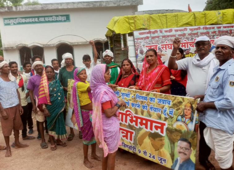 रेवांचल टाईम्स – मंडला, ज़िले में जन संघर्ष मोर्चा महाकौशल द्वारा 9 जून से 24 जून 2025 तक ‘जन स्वाभिमान यात्रा’ निकाली जा रही है। यह यात्रा धरती आबा बिरसा मुंडा की शहादत दिवस पर बालाघाट से शुरू होकर रानी दुर्गावती की पुण्यतिथि तक चलेगी। 9 जून से शुरू हुई जन स्वाभिमान यात्रा 14 जून को मंडला जिले में प्रवेश कर गई है। यात्रा में चल रहे बालाघाट के ग्रामीणों ने मवई ब्लॉक के पनारी खेड़ा के ग्रामीणों को बैनर सौंपा। बैनर सौंपने वक्त पनारी खेड़ा गांव के आम ग्रामीणों के अलावा घुईं टोला सरपंच रन्नुप्रसाद, वनग्राम जंगली खेड़ा से लक्ष्मणसिंह धुर्वे, करणसिंह धुर्वे उपस्थित रहे। जहां से यात्रा सरहदी ग्राम पंचायत इंद्री मनौरी की ओर रवाना हो गई। इस यात्रा में सामाजिक कार्यकर्ता विवेक पवार के साथ बालाघाट जिला पंचायत के सदस्य मंशाराम मंडावी यात्रा में शुरुआत से ही चल रहे हैं। इस यात्रा का उद्देश्य जल, जंगल और जमीन की रक्षा, आदिवासी अधिकारों की पुनर्स्थापना और ग्रामीण क्षेत्रों में भयमुक्त शांति व सुशासन के माहौल को स्थापित करना है।यह यात्रा बालाघाट और मंडला जिलों के आदिवासी बहुल गांवों और वनग्रामों से गुजर रही है। यात्रा के दौरान ग्रामवासियों से संवाद कर उनकी समस्याएं संकलित की जा रही हैं, जिन्हें आगे चलकर जिला प्रशासन को सौंपा जाएगा। यह पहल न केवल संविधान प्रदत्त अधिकारों — जैसे मनरेगा, वन अधिकार कानून, पांचवीं अनुसूची, पेसा अधिनियम और पंचायती राज — के प्रति जनजागरण का माध्यम बन रही है, बल्कि ग्राम सभा और पंचायतों को उनके लघु खनिज संसाधनों (रेत, मिट्टी, पत्थर आदि) पर नियंत्रण सुनिश्चित कराने की भी मांग कर रही है। वर्तमान में मंडला-बालाघाट क्षेत्र को नक्सल-प्रभावित क्षेत्र घोषित किए जाने के बाद भारी मात्रा में केंद्रीय सुरक्षा बलों की तैनाती हुई है, जिससे स्थानीय आदिवासी समुदायों में असुरक्षा और भय का वातावरण है। इसके अलावा यह क्षेत्र कान्हा टाइगर रिजर्व और फेन अभ्यारण्य के अंतर्गत आता है। हाल ही में राष्ट्रीय बाघ संरक्षण प्राधिकरण (एनटीसीए) ने 19 जून 2024 को एक आदेश जारी कर देशभर के टाइगर रिजर्व के कोर क्षेत्रों से 89808 परिवारों को विस्थापन के लिए चिन्हित किया है, जिनमें बड़ी संख्या में आदिवासी समुदायों के लोग हैं। अब तक 25007 परिवारों को उनके गांवों से हटाया जा चुका है। ‘जन स्वाभिमान यात्रा’ इन परिस्थितियों में ग्रामीणों के आत्मविश्वास को पुनः जागृत करने की कोशिश है। यात्रा का उद्देश्य है कि शासन की नीतियां भय की बजाय भरोसे पर आधारित हों। यात्रा के दौरान जन संवाद के माध्यम से यह भी मांग की जा रही है कि विकास परियोजनाओं के नाम पर हो रहे जबरन विस्थापन पर रोक लगे और सभी नागरिकों की समान भागीदा