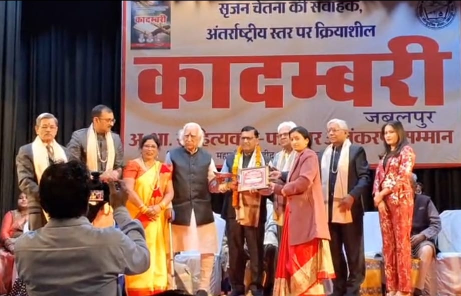 इसमें टीकमगढ़ मध्यप्रदेश के वरिष्ठ साहित्यकार छंदकार ग़ज़लकार आदरणीय डॉ अशोक पटसारिया, नादान जी को कादम्बरी सम्मान 2025 महीयसी प्रभा सिंह छन्दोदधी सम्मान से सम्मानित किया गया कादम्बरी संस्था के अध्यक्ष आचार्य भागवत दुबे जी एवं महासचिव आदरणीय राजेश पाठक, प्रवीण जी ने प्रदान करते हुए बहुत- बहुत बधाई एवं शुभकामनाएं दी। साथ ही उनके उज्जवल भविष्य की कामना की गई डॉ अशोक पटसारिया जी शारदे काव्य संगम मंच के पटल प्रभारी है एवं बिलासा छंद महालय के पटल प्रमुख है डॉ अशोक पटसारिया साहित्य के क्षेत्र सक्रिय योगदान एवं उनकी 6 कृतियों के प्रकाशित होने पर मिला है। मध्यप्रदेश जबलपुर के कादम्बरी सम्मान मिलने पर शारदे काव्य संगम मंच के संरक्षक आदरणीय श्री शैलेन्द्र पयासी जी ने बधाई एवं शुभकामनाएं दी समाज, परिवार क्षेत्र के लोगों शुभचिंतकों ने बधाई देकर उज्जवल भविष्य की कामना की फेसबुक, वाट्स ऐप,के माध्यम से लगातार बधाई प्राप्त हो रही लिधौरा में खुशी की लहर व्याप्त है डॉ अशोक पटसारिया नादान जी ने सभी साहित्य मनीषियों स्वजनों शुभ चिंतकों एवं मीडिया को धन्यवाद देते हुए आभार व्यक्त किया है। सभी वरिष्ठ जन स्नेह आशीष बनाए रखें।