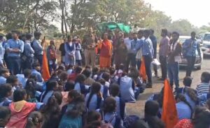 फीस वृद्धि कम करने अभाविप का उग्र प्रदर्शन, किया चका जाम