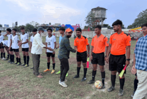 रेवांचल टाईम्स – मंडला सोमवार को महात्मा गांधी स्टेडियम मंडला में म.प्र. फुटबॉल संघ व जिला फुटबॉल संघ, मण्डला के तत्वाधान में खेली जा रही दक्षिण क्षेत्र जूनियर बालक अंतर जिला फुटबॉल प्रतियोगिता 2025 के अंतर्गत दो मैच खेले गए। पहला मैच बालाघाट व बैतूल के बीच खेला गया जबकि दूसरा मैच बुरहानपुर और छिंदवाड़ा के मध्य खेला गया। बालाघाट ने बेहतरीन खेल का प्रदर्शन करते हुए बैतूल को 3/0 से मात दी। बालाघाट की तरफ से तीनों गोल मैच के पहले हॉफ में ही आए। मोहम्मद शादाब ने खेल 6वें मिनिट में गोल कर अपनी टीम को बढ़त दिला दी। खेल के 18वें मिनिट में कुणाल केरई ने अपनी टीम के लिए दूसरा गोल किया। मैच के 32वें मिनिट में फिर मोहम्मद शादाब ने गोल कर बालाघाट को 3/0 की निर्णायक बढ़त दिला दी जो खेल की समाप्ति तक कायम रही।