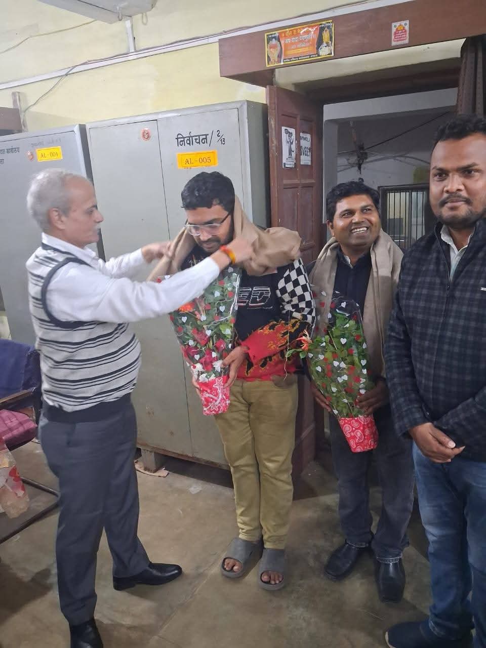 कार्य की उत्कृष्टता और समय पर लक्ष्य प्राप्ति को देखते हुए अपर कलेक्टर श्री राजेन्द्र सिंह द्वारा बीएलओ सुपरवाइजर दिलीप बरया एवं पटवारी हिमांशु अवस्थी को शाल एवं पुष्प गुच्छ भेंट कर सम्मानित किया गया।