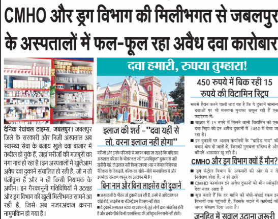 CMHO और ड्रग विभाग की मिलीभगत से जबलपुर के अस्पतालों में फल-फूल रहा अवैध दवा कारोबार