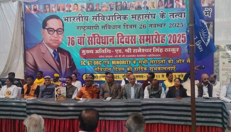 भारतीय संविधानिक महासंघ के तत्वाधान में अम्बेडकर परिसर, अम्बेडकर तिराहा में 76 वाॅ संविधान दिवस का कार्यक्रम आयोजित