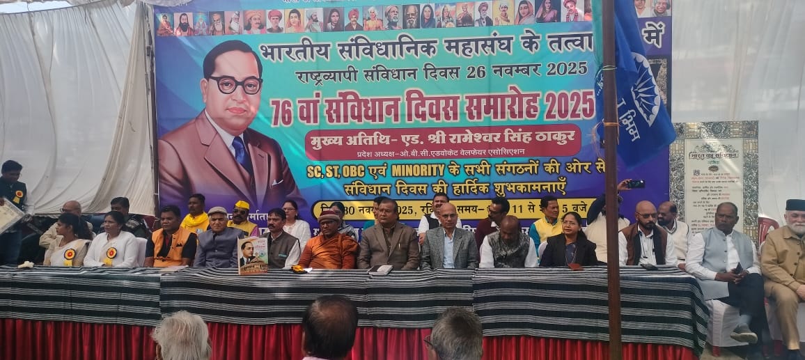रेवाँचल टाईम्स- छिंदवाड़ा: 30/11/2025 को भारतीय संविधानिक महासंघ के तत्वाधान में स्थानीय अंबेडकर तिराहे में 76 वें संविधान दिवस का आयोजन किया गया । इस अवसर पर भारतीय संविधानिक महासंघ के जिला महासचिव एडवोकेट देवेंद्र वर्मा ने बताया कि समस्त एस.सी., एस.सी., ओबीसी एवं माइनॉरिटी समाज के समस्त सामाजिक संगठनों के पदाधिकारियों द्वारा कार्यक्रम के प्रारंभ में ज्योतिबाफुले जी की पुण्यतिथि मनाई गई एवं बाबासाहेब आंबेडकर, महात्मा ज्योतिबा फुले, डॉ ए पी जे अब्दुल कलाम, बिरसा मुंडा के छायाचित्रों पर कार्यक्रम के मुख्य अतिथि एड. रामेश्वर सिंह ठाकुर एडवोकेट विनायक प्रसाद शाह एवं अतिथियों डॉ भंते आनंद जी एवं समस्त सामाजिक संगठनों के पदाधिकारियों द्वारा वंदन कर कार्यक्रम की शुरुवात की ै एड विनायक प्रसाद शाह ने संविधान की प्रस्तावना का वाचन किया सभी ने संविधान की शपथ लिया तत्पश्चात कार्यक्रम में समस्त सामाजिक संगठनों के पदाधिकारियों द्वारा अपने उद्बोधन में मुख्य एकजुटता पर जोर दिया सभी समाजों के जिला अध्यक्ष ने अपने-अपने उद्बोधन प्रकट किया कार्यक्रम में एससी एसटी और माइनॉरिटी के प्रमुख लोग की गरिमामयी उपस्थिति रही मुख्य अथिति एड श्री रामेश्वर सिंह ठाकुर जी ने अपने उद्बोधन में संविधान को विस्तार पूर्वक उदाहरण के साथ समझाया और सुप्रीम कोर्ट एवं उच्च न्यायालय में चल रहे प्रकरणों के विषय में भी बताया कार्यक्रम की अध्यक्षता नीलिमा बागड़े के द्वारा की गई एवं आभार प्रदर्शन के लिए महासंघ के अध्यक्ष श्री एस बी सोनटक्के जी के द्वारा समस्त आमंत्रित संगठनों को आभार व्यक्त किया, और प्रत्यक्ष व अप्रत्यक्ष रूप से जिन्होंने सहयोग किया उनका भी आभार माना प्रिंट एवं इलेक्ट्रॉनिक मीडिया को धन्यवाद दिया जिन्होंने कार्यक्रम को उचित स्थान दिया और जिला प्रशासन पुलिस प्रशासन का भी आभार प्रकट किया सभी साथियों द्वारा एकजुट होकर एक मंच पर आने की सराहना की । साथ ही सभी साथियों ने अपने उद्बोधन में एक जुट होने की बात कही। कार्यक्रम में मंच संचालन श्री देवेन्द्र खांडेकर एवं एडवोकेट देवेंद्र वर्मा ने किया। इस अवसर पर मुख्य रूप से नसीम पाशा एड बलदास डेहरिया प्रहलाद कुशरे नामदेव सरोदे राजकुमार साखरे ममता सहारे संतोषी गजभिए रानू डेहरिया श्याम विश्वकर्मा राजू विश्वकर्मा मनोज सोनी लोकेश डेहरिया संजय वर्मा राजेश दौडघ्के सहित महासंघ के अध्यक्ष एस बी सोनटक्के, महासचिव देवेन्द्र वर्मा, सचिव देवेन्द्र खांडेकर, भीमराव सोमकुंवर जी, एस एल बारमार्टे, दीपक बागडघ्े, शिव मंडराह, मोहरू पटेल, मदन बरखाने, आजम भाई एवं समस्त साथियों द्वारा कार्यक्रम को सफल बनाने हेतु सहयोग प्रदान किया गया। सभी अतिथियों को भारतीय संवि