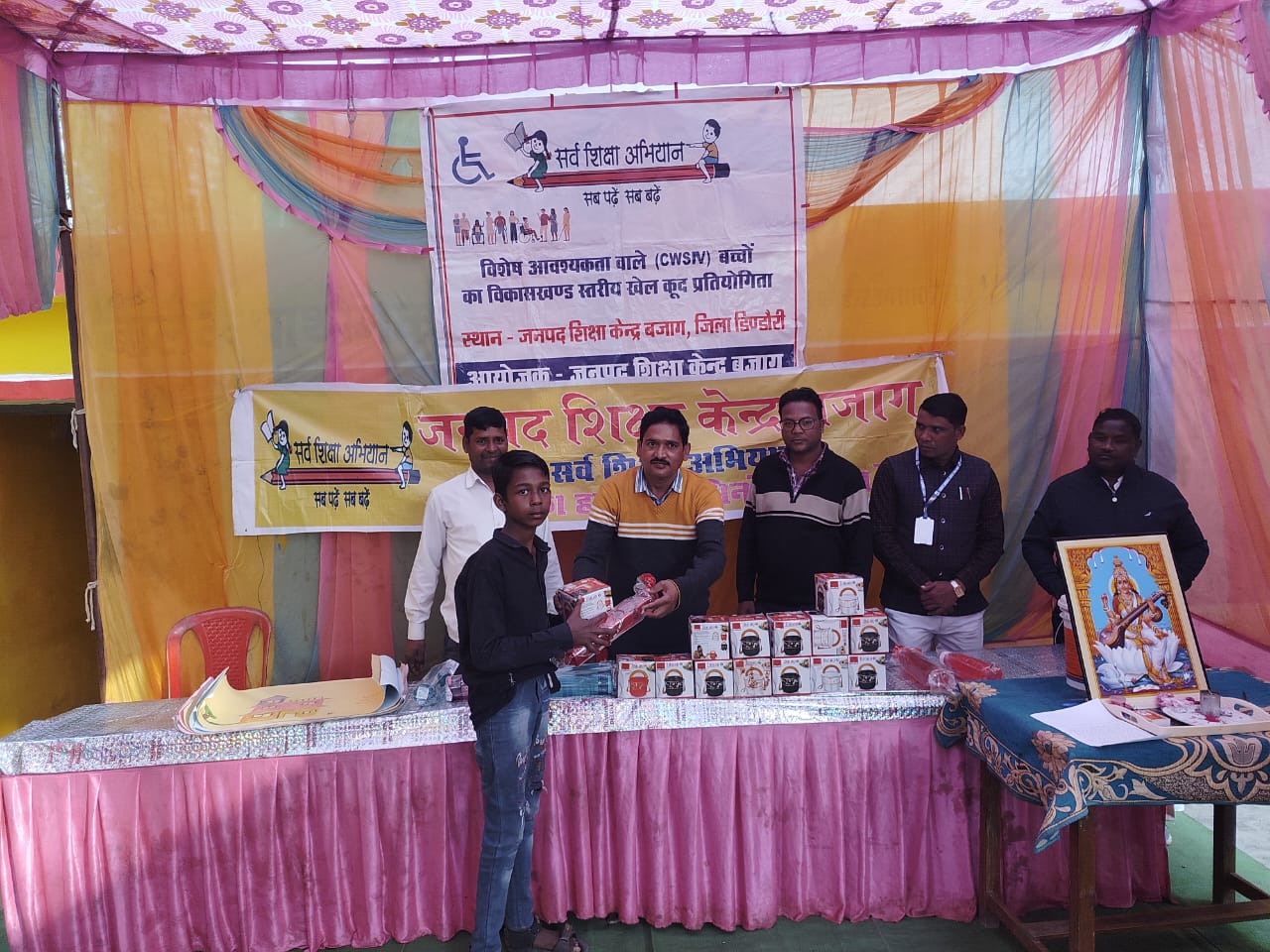 रेवांचल टाईम्स – बजाग विश्व दिव्यांग दिवस के अवसर पर विकासखंड स्तरीय शिविर का आयोजन जनपद शिक्षा केंद्र बजाग में किया गया जिसमें विकासखंड के विभिन्न शालाओं से कक्षा एक से आठवीं तक के दिव्यांग बच्चों ने भाग लिया। आयोजन का मुख्य उद्देश्य यह था कि इन बच्चों को भी सामान्य बच्चों की तरह ही मुख्य धारा में जोड़ना ।इसी क्रम में दिव्यांग बच्चों के द्वारा चित्रकला रंगोली कुर्सी दौड़ गायन नृत्य दौड़ आदि प्रतियोगिताओं का आयोजन किया गया । प्रतिभागी सभी दिव्यांग बच्चों ने बढ़ चढ़कर भाग लिया तथा अपने खेल कौशल व प्रतिभा का उत्कृष्ट प्रदर्शन किया।प्रतियोगिता उपरांत बच्चों को टिफिन का सेट पानी बोतल पेन कंपास पुरस्कार वितरण किया गया ।वही दिव्यांग बच्चों तथा अभिभावकों एवं साथ में आए शिक्षकों को लंच के पैकेट दिए गए ।उल्लेखनीय है कि विकास खंड स्तर पर विभिन्न प्रतियोगिताओं में चयनित दस दिव्यांग बच्चों को तीन नवंबर को जिला स्तरीय कार्यक्रम में भाग लेंगे कार्यक्रम में बीआरसी बृजभान सिंह गौतम बी.एस .सी. संजय जैन ,बलवंत साहू ,दीपेंद्र चौहान ,अरुण चौधरी.एम.आर.सी. मुकेश झारिया. जन शिक्षक विनोद साहू. सुखसैन मरावी. गोलेंद्र हरि नाखेड़े. रामूलाल सोनी. महेंद्र मानिकपुरी. एम.आई.एस.को नीलेश धूरियां कंप्यूटर ऑपरेटर हेमंत पाठक. अरुण श्रीवास जानपद शिक्षा केंद्र एवं विभिन्न शालाओं से आए शिक्षक गण उपस्थित रहे