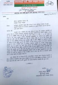 नगरपालिका के द्वारा नियम विरुद्ध दुकान निर्माण प्रक्रिया पर रोक लगाने सपा ने कलेक्टर को लिखा पत्र