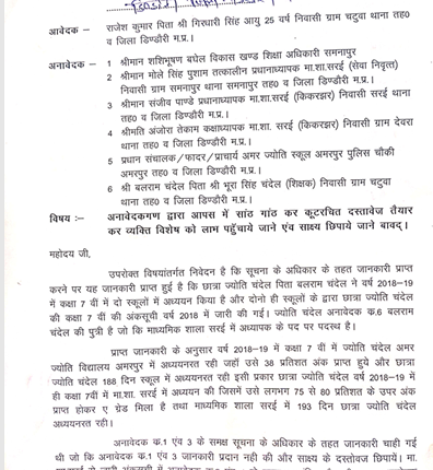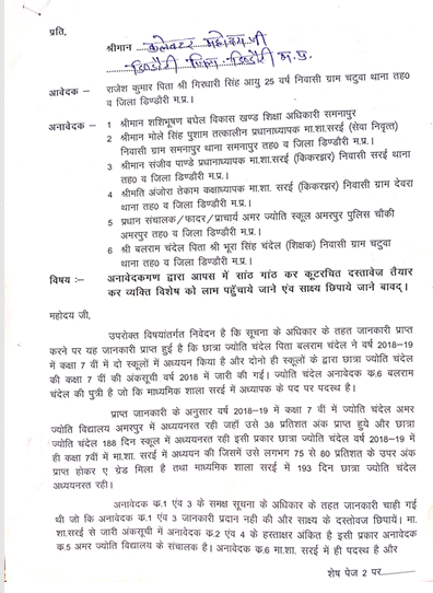 मामला माध्यमिक शाला सरई के एक शिक्षक की पुत्री कुमारी ज्योति चंदेल से जुड़ा है। जांच में सामने आया कि छात्रा ने वास्तविक रूप से सत्र 2018-19 में अमर ज्योति विद्यालय, अमरपुर से कक्षा सातवीं की परीक्षा दी थी। स्कूल रिकॉर्ड के अनुसार उसका परीणाम 38 प्रतिशत (ग्रेड-D) तथा उपस्थिति 183 दिवस दर्ज है।