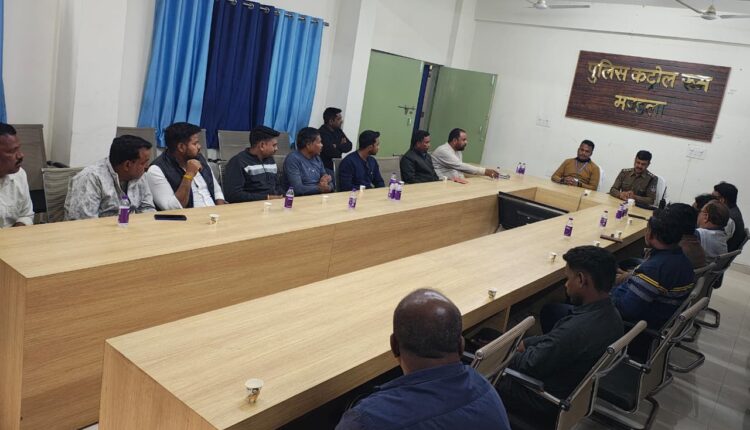 मंडला पुलिस द्वारा शहर के मैरिज गार्डन एवं डीजे संचालकों की बैठक—यातायात, सुरक्षा एवं ध्वनि नियमन पर दिए गए आवश्यक निर्देश