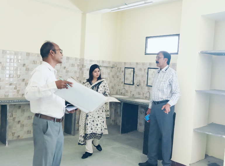 पीछे की तरफ पुरानी बाउंड्री वॉल को आवश्यकता अनुसार मरम्मत अथवा नवीन निर्माण कराया जावे, नव निर्मित छात्रावास के पीछे की तरफ पेवर ब्लॉक लगाया जावे, सभी नालियों को आरसीसी ड्रेन कवर से ढका जावे, बीच के रिक्त स्थान पर बैडमिंटन कोर्ट बनाएं साथ ही टॉयलेट ब्लॉक में डस्टबिन रखें OTS चैंबर कवर को सघन करें एवं कार्य को आवश्यकतानुसार पूर्ण करें । उपरोक्त निर्देश के साथ पूरे परिसर का निरीक्षण अधिकारीगणों द्वारा किया गया ।