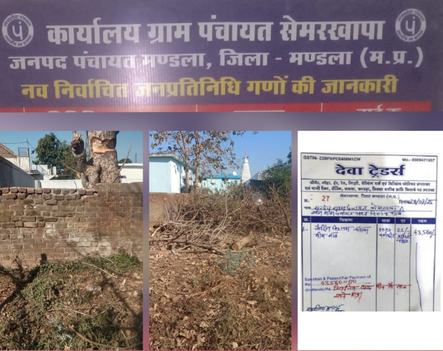 रेवाँचल टाईम्स – मण्डला, जिला मुख्यालय की जनपद पंचायत मण्डला अंतर्गत ग्राम पंचायत सेमरखापा में सरपंच-सचिव-उपसरपंच एवं पंचों की लापरवाही एवं अनियमिताएं दिनों-दिन बढ़ती जा रही है, जिसका मुख्य कारण जिम्मेदार आला-अधिकारियों द्वारा दिया जा रहा दोषियों को संरक्षण है नतीजा ग्राम पंचायत सेमरखापा में बैठे जिम्मेदारों ने ग्राम पंचायत को अपनी पुस्तैनी बखौती बना लिया है।