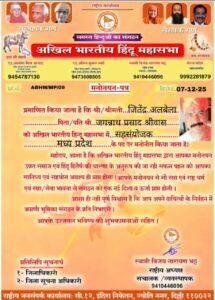 हिंदुत्व की मशाल थामेंगे जितेन्द्र अलबेला! अखिल भारतीय हिंदू महासभा के प्रदेश सहसंयोजक नियुक्त