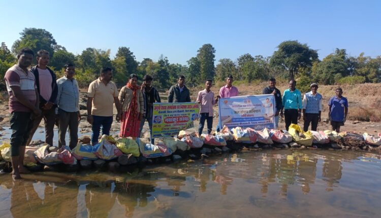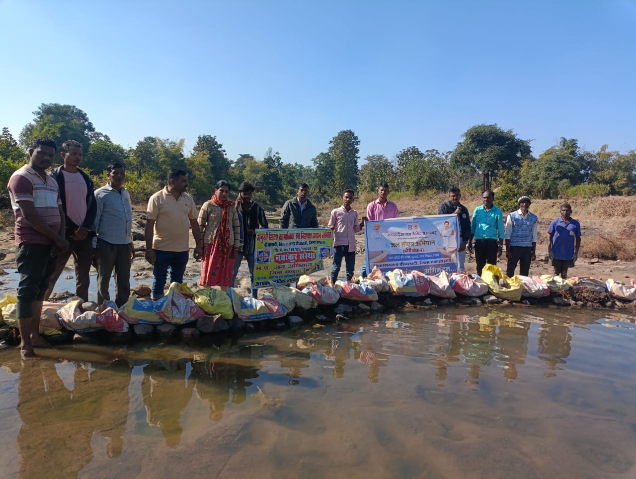 ग्राम सलैया वनग्राम में जल संचय अभियान अंतर्गत बोरी बंधान