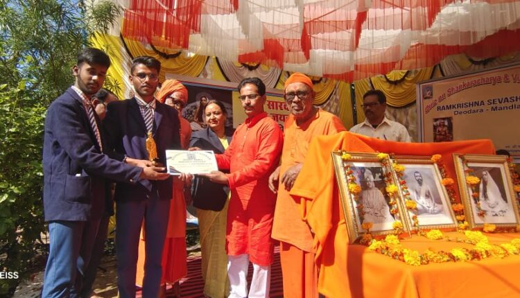 रेवांचल टाइम्स मंडला श्री रामकृष्ण सेवा आश्रम, ग्राम देवदरा मंडला में आज माँ शारदा जी के पावन जन्मोत्सव पर्व के उपलक्ष्य में भव्य एवं ऐतिहासिक संत समागम का आयोजन किया गया। आश्रम के संचालक श्री शारदातमानंद महाराज जी के सान्निध्य में आयोजित इस दिव्य कार्यक्रम में मंडला–डिंडोरी जिले सहित विभिन्न क्षेत्रों के संत-महात्माओं, स्थानीय नागरिकों, मातृशक्ति, बुजुर्गों तथा बच्चों ने बड़ी श्रद्धा और उत्साह के साथ भाग लिया।कार्यक्रम की शुरुआत विधिवत पूजा-अर्चना और वैदिक मंत्रोच्चार के बीच हुई। इसके पश्चात स्कूली छात्र-छात्राओं के लिए वेदोत्तरी प्रश्नोत्तरी प्रतियोगिता का आयोजन किया गया। इस प्रतियोगिता में सरस्वती शिशु मंदिर, माउंटफोर्ट स्कूल सहित कई विद्यालयों के प्रतिभाशाली छात्र-छात्राओं ने उत्साहपूर्वक सहभागिता की। बच्चों ने वेद, संस्कृति, भारतीय दर्शन तथा अध्यात्म से जुड़े प्रश्नों के प्रभावी उत्तर देकर सभी को प्रभावित किया। प्रतियोगिता में उत्कृष्ट प्रदर्शन करते हुए माउंटफोर्ट स्कूल के विद्यार्थियों ने प्रथम स्थान प्राप्त कर विद्यालय का गौरव बढ़ाया।