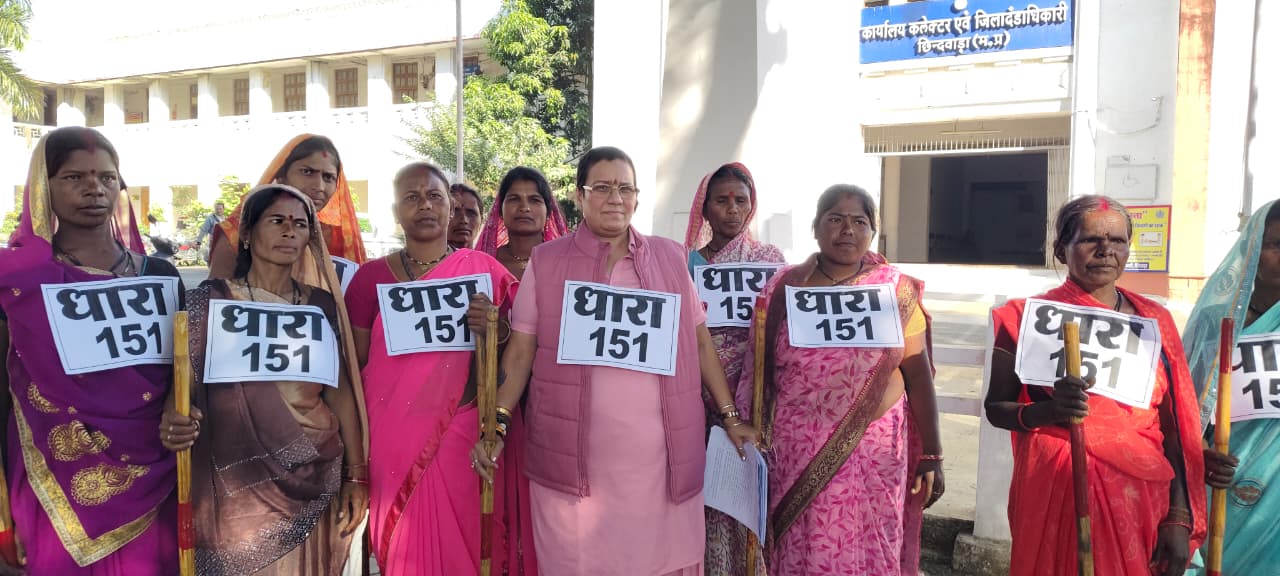 छिंदवाड़ा रेवांचल टाइम्स सूर्यकांत भट्ट|छिंदवाड़ा – गुलाबी गैंग कमाण्डर पूर्णिमा वर्मा द्वारा तहसील चैरई के अंतर्गत आदिवासी बाहुल्य ग्राम पठरा जंगली माल की सैंकड़ों महिलाओं को लेकर इस आदिवासी बाहुल्य ग्राम में हो रही अवैध शराब की बिक्री एवं अवैध कुचियाओं को बंद कराने के लिये धारा 151 का पोस्टर लगाकर जिला आबकारी अधिकारी सहित राष्ट्रपति, प्रधानमंत्री, मुख्यमंत्री, आबकारी मंत्री एवं महिला आयोग, मानव अधिकार आयोग, अनुसूचित जनजाति आयोग सहित विभाग के नाम ज्ञापन सौंपा । पूर्णिमा वर्मा ने बताया कि जिला छिंदवाड़ा की तहसील चैरई के अंतर्गत ग्राम पठरा जंगली माल जो कि आदिवासी बाहुल्य ग्राम है, इस ग्राम में विगत् लंबे समय से अवैध रूप से शराब दुकान का संचालन हो रहा है एवं हर दूसरे-तीसरे घर में अवैध रूप से कुचियाओं का संचालन हो रहा है एवं ग्राम में ही कुछ लोग स्वयं शराब बनाकर उसका विक्रय कर रहे हैं । उन्होंने बताया कि ग्राम की गुलाबी गैंग कमाण्डर लक्ष्मी बिझांडे ग्राम पठरा जंगली माल की अपनी सैंकड़ों महिलायें के साथ छिंदवाड़ा पहुॅची और मुझे अवगत कराया कि उनके ग्राम में इस अवैध शराब की बिक्री एवं कुचियाओं के चलते ग्राम की गरीब आदिवासी महिलाओं का जीवन अस्त व्यस्त हो गया एवं ग्राम के युवाओं का इस जहरीली शराब के सेवन से स्वास्थ्य खराब हो रहा है, और इस अवैध शराब के चलते ग्राम में आये दिन लड़ाई, झगड़ा एवं विवाद की स्थिति उत्पन्न हो रही है । पूर्णिमा वर्मा ने कहा कि गुलाबी गैंग द्वारा विगत लंबे समय से छिंदवाड़ा नगर सहित संपूर्ण जिले में सार्वजनिक स्थलों, रहवासी क्षेत्रों और स्कूल के आसपास संचालित इन अवैध शराब दुकानों, कुचियाओं और आहतों को हटाने हेतु बार-बार शासन-प्रशासन को ज्ञापन दिया जा रहा है एवं स्वयं आगे आकर इन शराब माफियाओं से निवेदन कर और न मानने पर धरना, आंदोलन कर दुकानों को बंद कराने का प्रयास विगत् दिनों किया गया परंतु जिला प्रशासन द्वारा उल्टा शराब माफियाओं के दबाव में आकर मुझ पर ही झूठा प्रकरण बनाकर जेल भिजवा दिया जाता है एवं जेल में कई दिनों तक अनावश्यक ही बंद रखकर मुझे मानसिक एवं शारीरिक रूप से प्रताड़ित किया जाता है । यह बड़े ही शर्म की बात है कि मेरे बार-बार ज्ञापन देने के बाद भी छिंदवाड़ा शहर के बीचों-बीच स्थानीय मान सरोवर काम्पलेक्स के सामने बाबू डेली नीड्स एवं संतोष किराना स्टोर, उसी तरह से फब्बारा चैक में तीन दुकानों में और चंदनगंव, परतला, खजरी सहित ग्रामीण क्षेत्रों में सैंकड़ों अवैध कुचियायें अवैध रूप से चल रही है, जिससे संपूर्ण जिले में अराजकता का माहौल है एवं परिवार की महिलायें और बच्चों का भविष्य अंधकारमय हो गया है, इस अवैध शराब की बिक्री के चलते संपूर्ण मध्यप्रदेश 