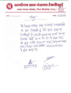 ग्राम पंचायत टेमनीखुर्द में सवारी पंचायत का पानी टेंकर के नाम पर फर्जी तरीके से निकली गई राशि